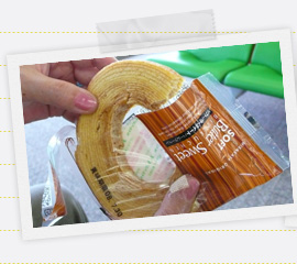お腹すいたわぁ〜とマダム、バームクーヘンを売店で購入。
