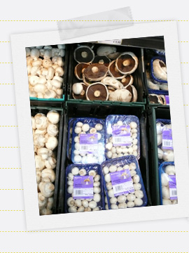 日本だと、ナイロン袋に食品を入れるけど、コチラではこんなカワイイきのこ専用袋。サイドが透明ビニールになっていました。